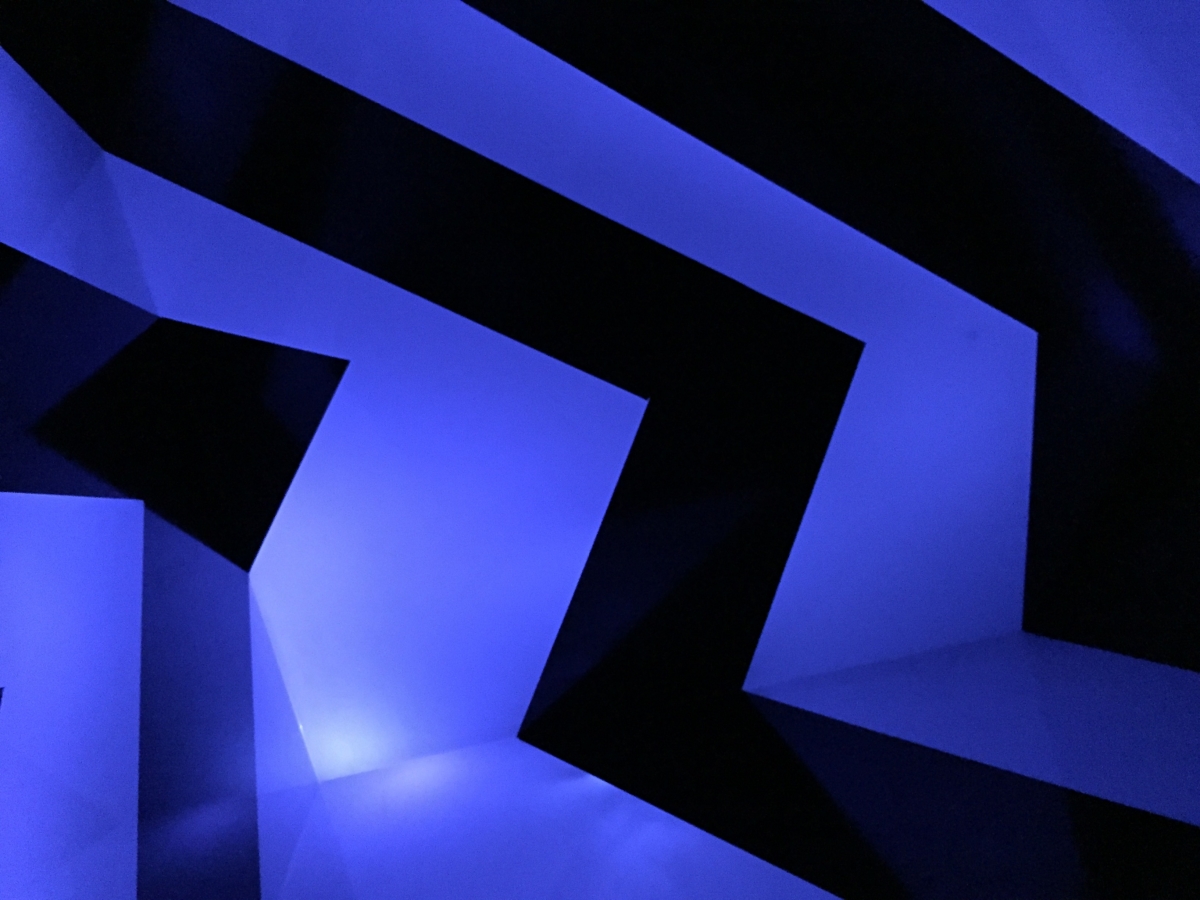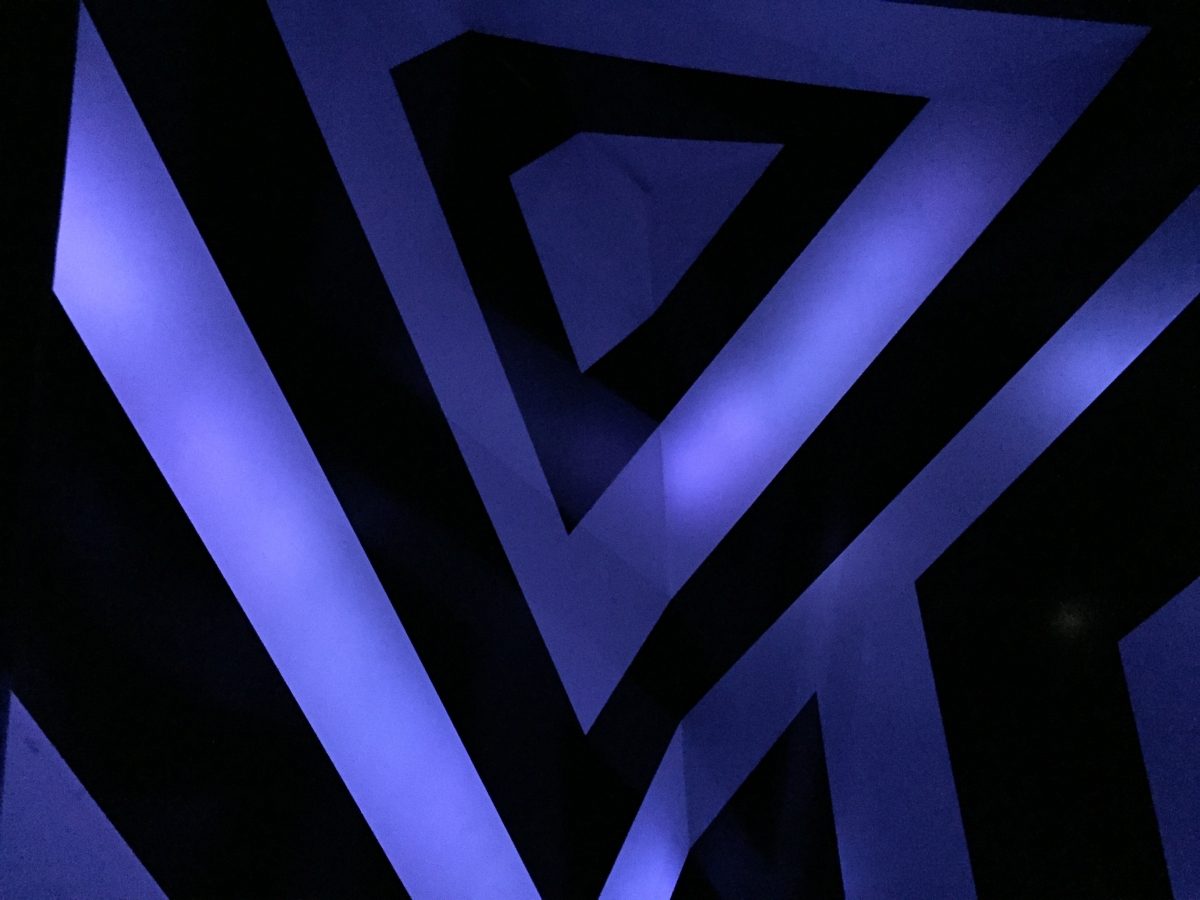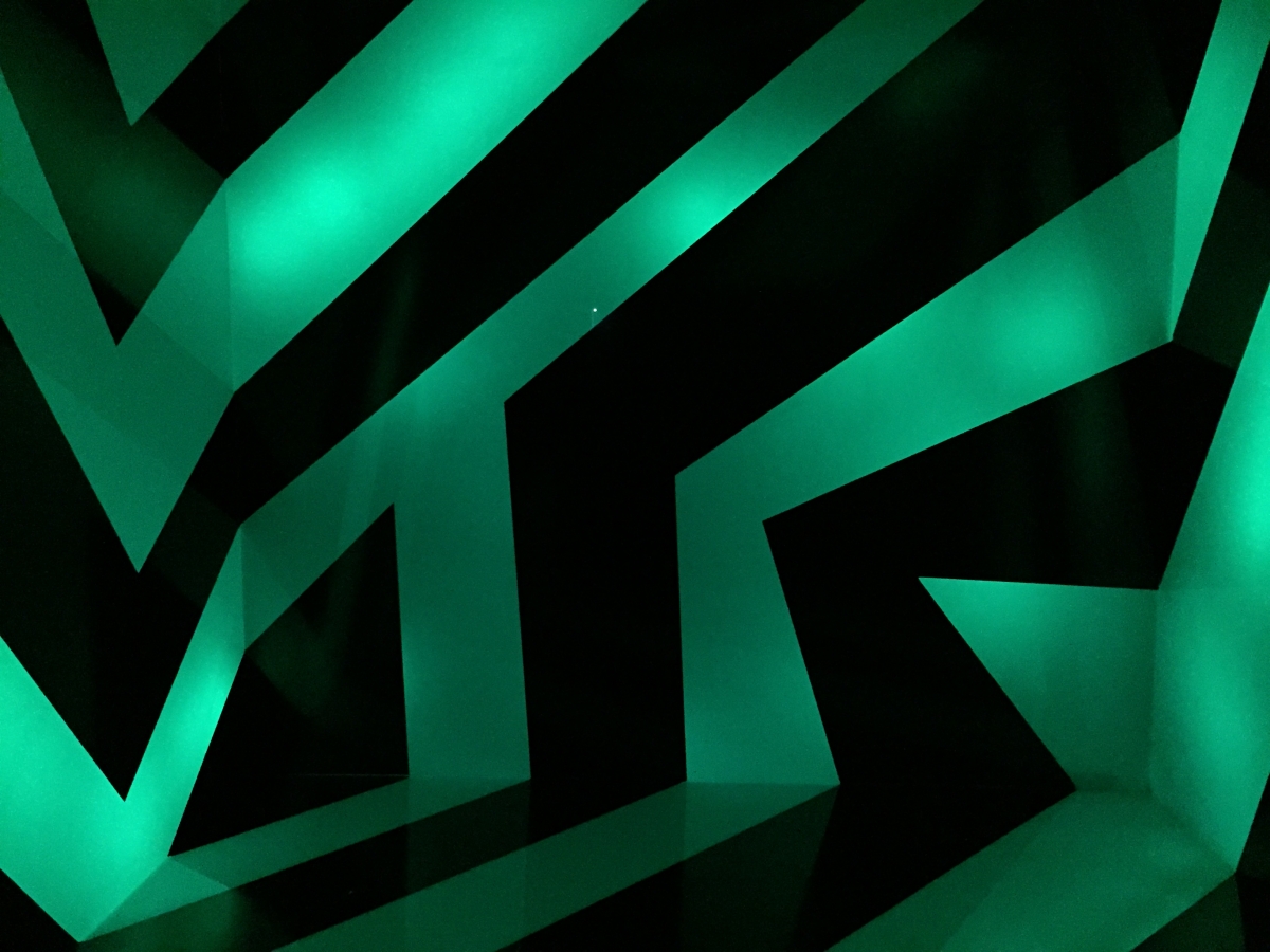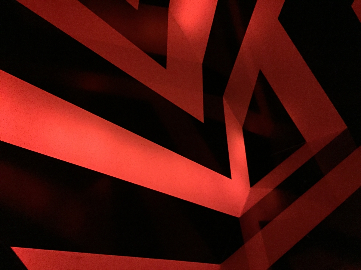 An element of the Maze: Cube, is an installation of a room with a sloped floor and ceiling leading to it, referencing an Alice in Wonderland experience - perception and sense bends once the structure of the room is altered out of ordinary dimensions. Optical patterned walls are illuminated by a backlit LED construction. Changing colors of the LED lighting alter the perception of depth, further disorienting inhabitants.